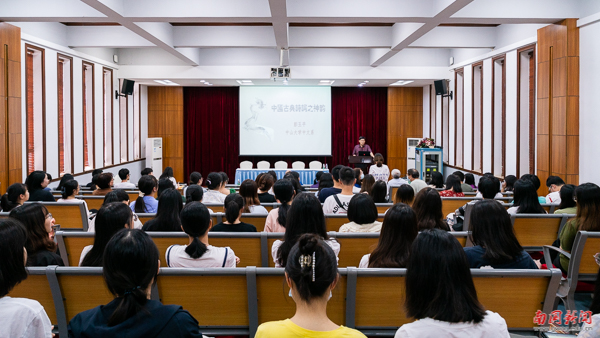彭玉平教授为新葡京官网师生讲授唐宋诗词的魅力(谢丰 摄)