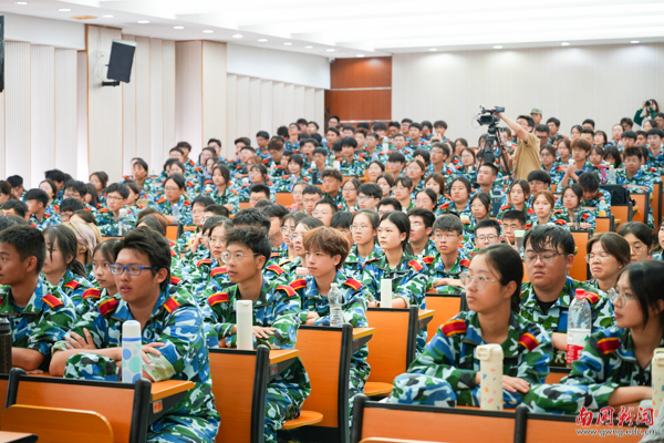 统一的迷彩服、笔挺的坐姿、节奏整齐的掌声,正在接受军训训练的新生们给谢志华留下了朝气蓬勃的第一印象。谢志华以军事技能对大一新生的意义为切入点,引导新生深入思考军训对学生人格素养的培养。他从日本宅男宅女现象、韩国人口出生负增长现象出发,指出两类人群的共性,即无信仰、无责任感。