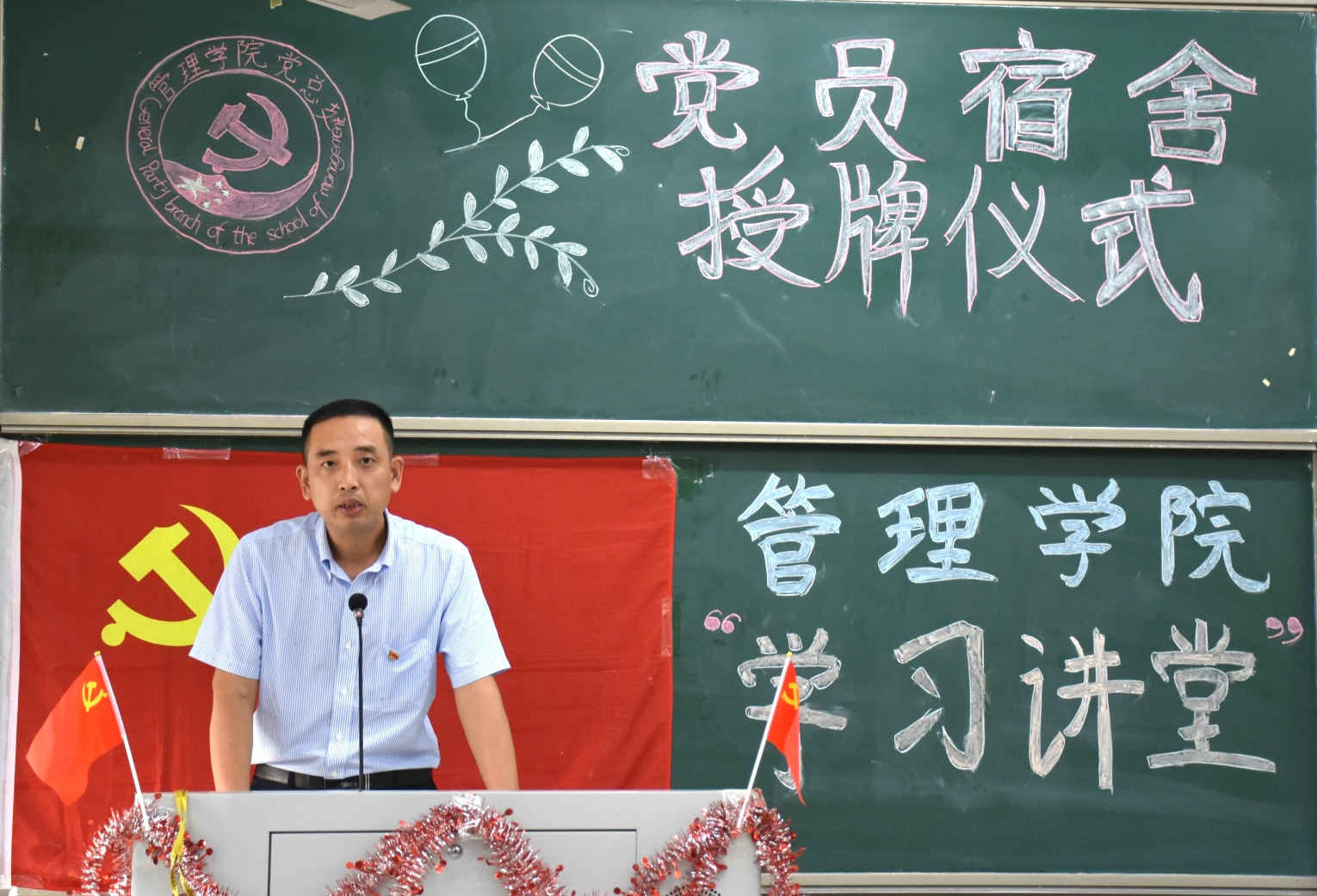 本网讯 为进一步加强思想引领工作,推进“两学一做”学习教育常态化建设,使习近平新时代中国特色社会主义思想和党的十九大精神深入人心,10月25日管理学院党总支于G502开展七彩党日——红色知党爱党之“学習讲堂”启动仪式。思政部督导、马克思主义理论教研室主任薛安泰教授受邀讲授《习近平新时代中国特色社会主义思想》。学校副校长、管理学院院长何艾兵,校党委副书记、党委宣传部部长付鸿信,管理学院党总支书记郭婷,思政部教师,管理学院全体教师、学生党员、团支书等130人参加。