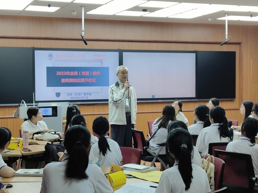 (周文贵教授为新晋全英(双语)教师颁发资格证书)