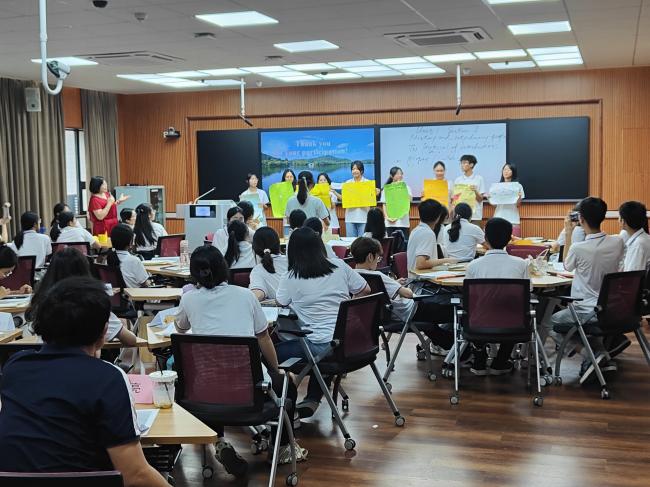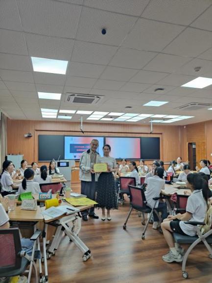 推进全英(双语)教学的全面升华,打造鲜明外语特色,是全体全英(双语)教师的崇高使命。11月9日下午,本学期全英(双语)教学公开课第二讲暨2023年全英(双语)教学资格证授予仪式在G301智慧教室举行。全英(双语)教学专家组组长周文贵教授出席活动,全体双语教师共同见证了证书的授予仪式并参加公开课活动研讨。