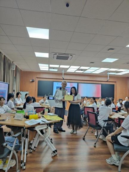 2023年全英(双语)教学资格证授予仪式上,周文贵教授为张研、王可昕、李梦洁、王质悦、杨晓、周丹纯、邢雷、王思瑶八位新晋的全英(双语)教师颁发全英(双语)教学教师资格证,听课教师、2023级小学教育专业1班的学生见证了证书的授予仪式并对新晋双语教师表示热烈祝贺。
