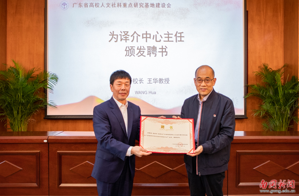 执行校长王华为译介中心主任温宾利教授颁发聘书