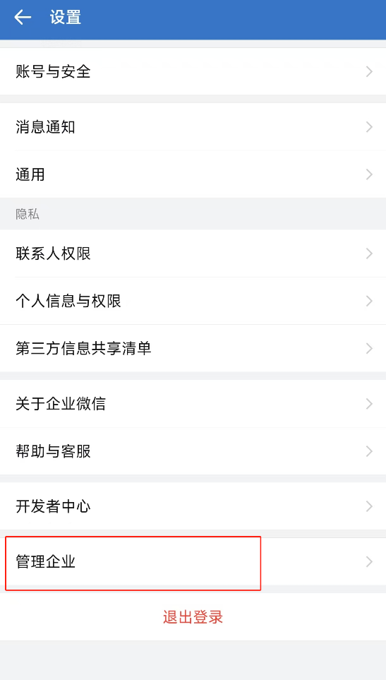 1.点击右下角“设置”图标后,点击“管理企业”。