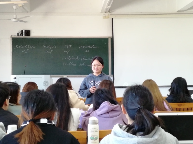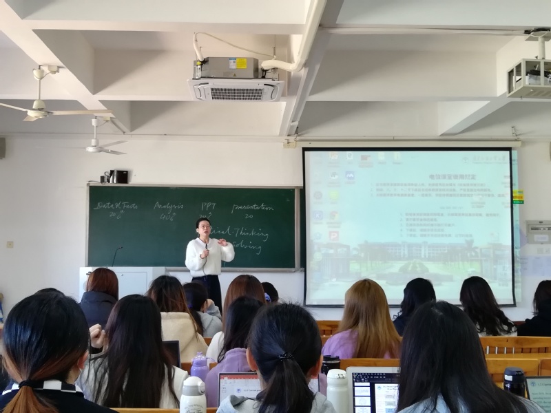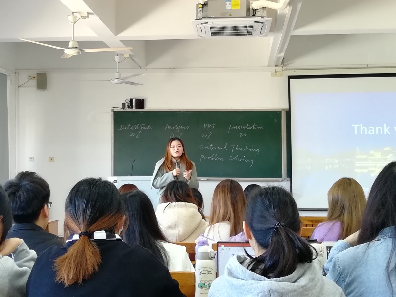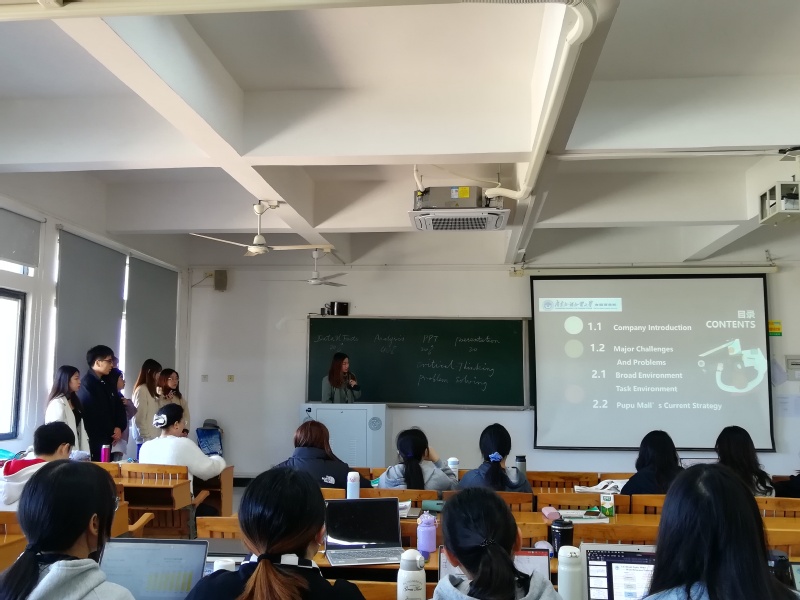 本次观摩课采用学生小组课外研究、课内展示的形式,旨在帮助学生结合学术英语课程的教学内容,用英语分析、解决企业遇到的实际问题,借以培养学生的批判性思维和问题解决能力以及英语语言运用能力,体现了以学生为本的自主、合作、研究的教学理念。