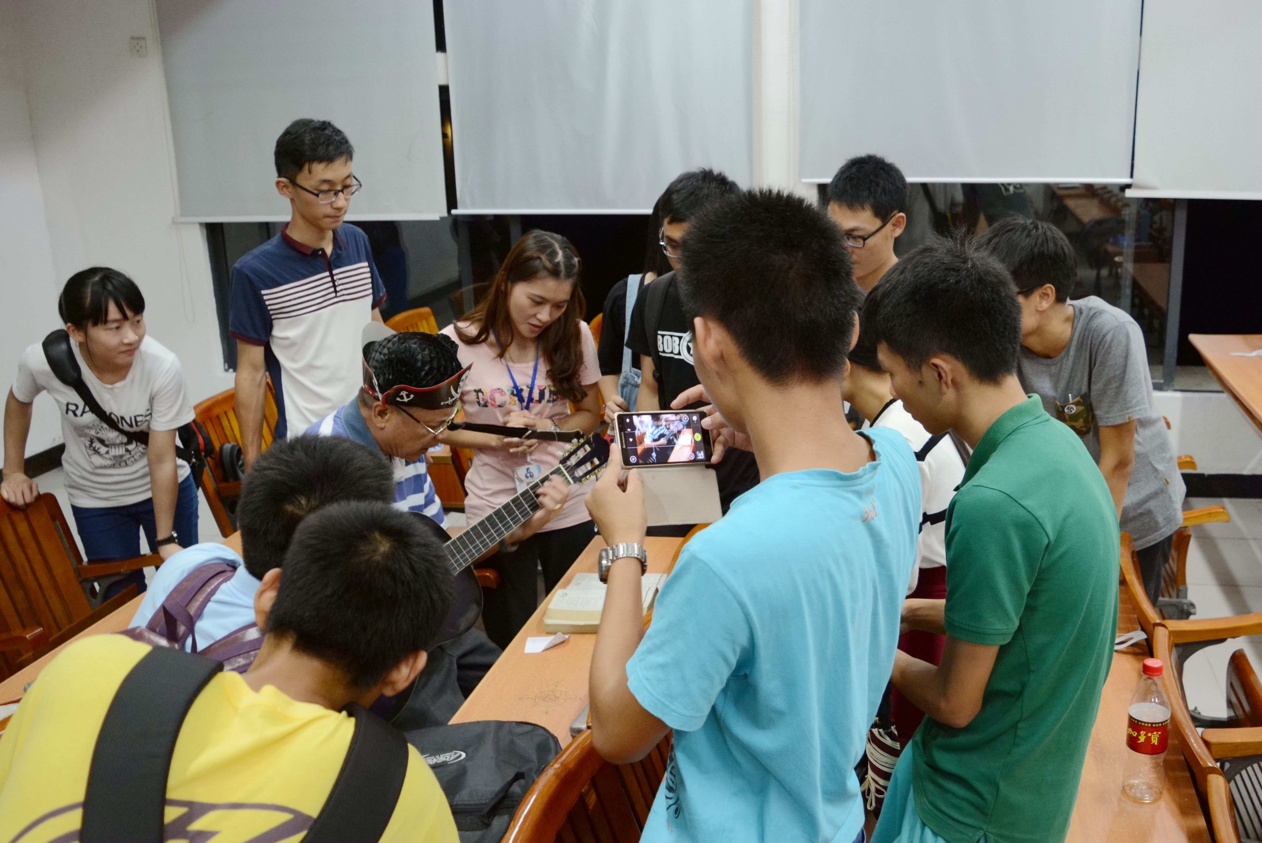 外教与学生唱英文歌 李艳云摄
