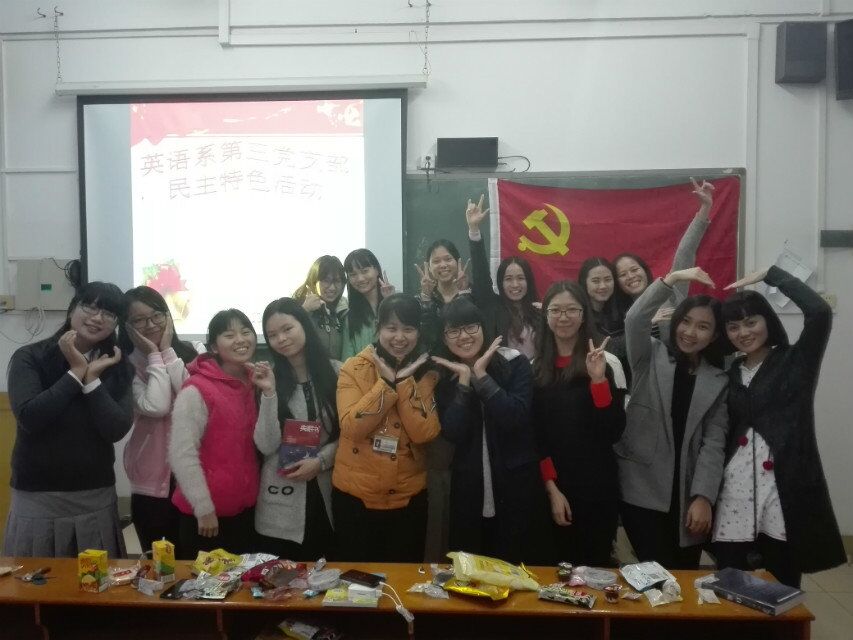 本网讯 12月29日下午,英文学院第三党支部在教学楼B403举办了民主特色活动,支部书记徐燕萍老师,副书记吕卓儒及支部党员预备党员参加了此次活动。