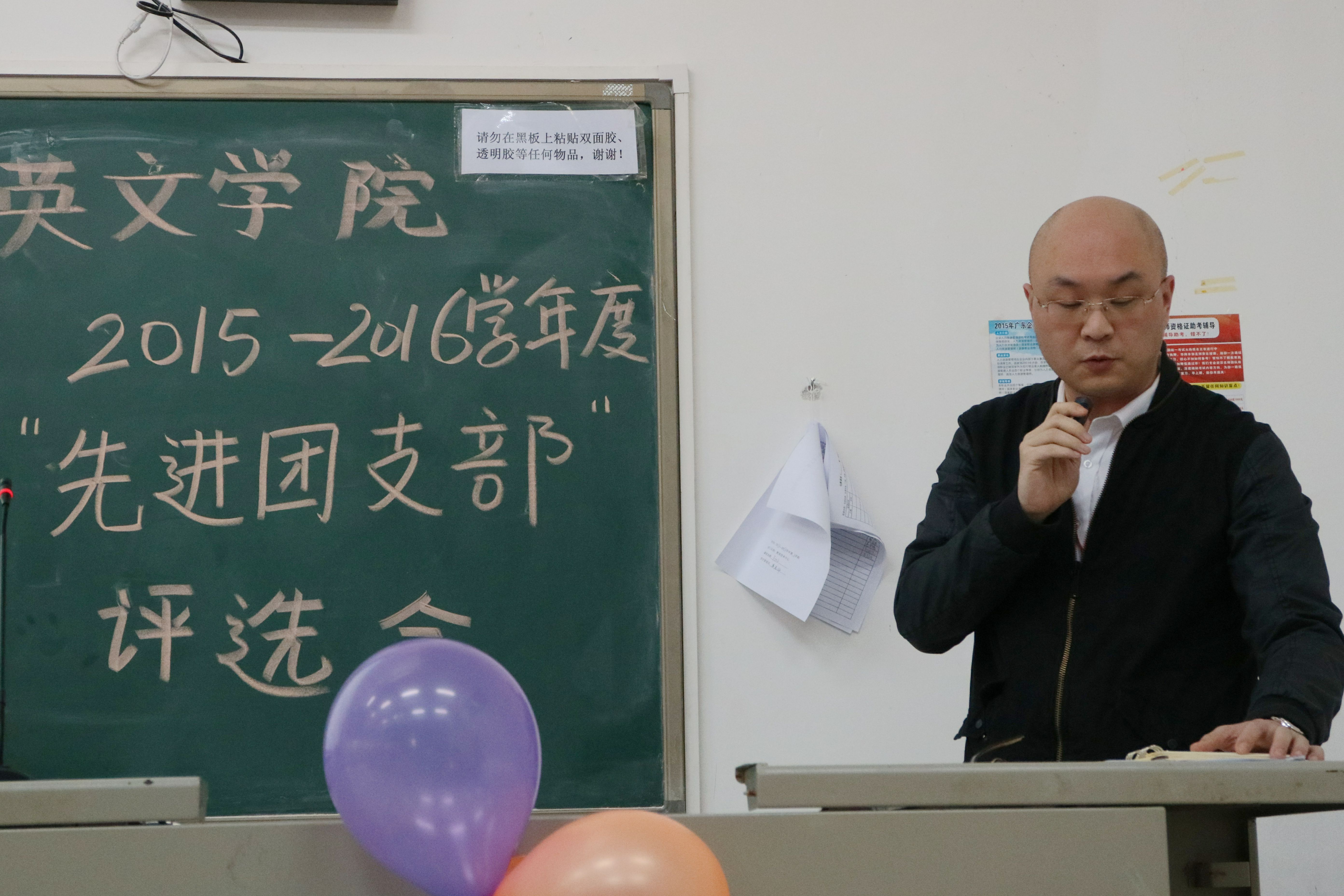 本网讯 3月31日下午,英文学院团总支在教学楼F103举行了“先进团支部”评选活动。出席本次活动的嘉宾有英文学院党总支副书记曾维佳、团总支书记李乐珺、团总支副书记周桂吉以及钱晓璇。