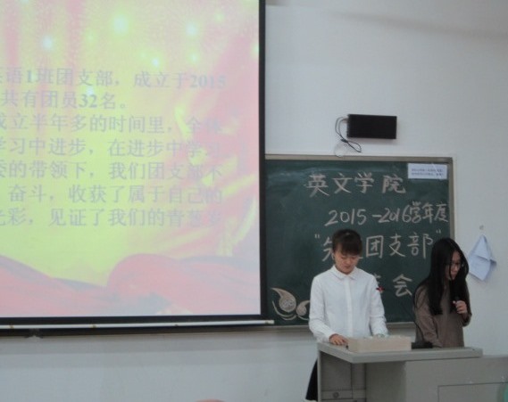 参加本次评选活动的班级一共有八个,每个团支部的代表向大家展示了自己班级的学习学风建设情况、思想道德建设情况以及团日活动的开展状况等。其中,13级商务英语1班展示了其班级英语专业四级的考试通过情况,以高达百分之七十二的通过率居年级榜首。