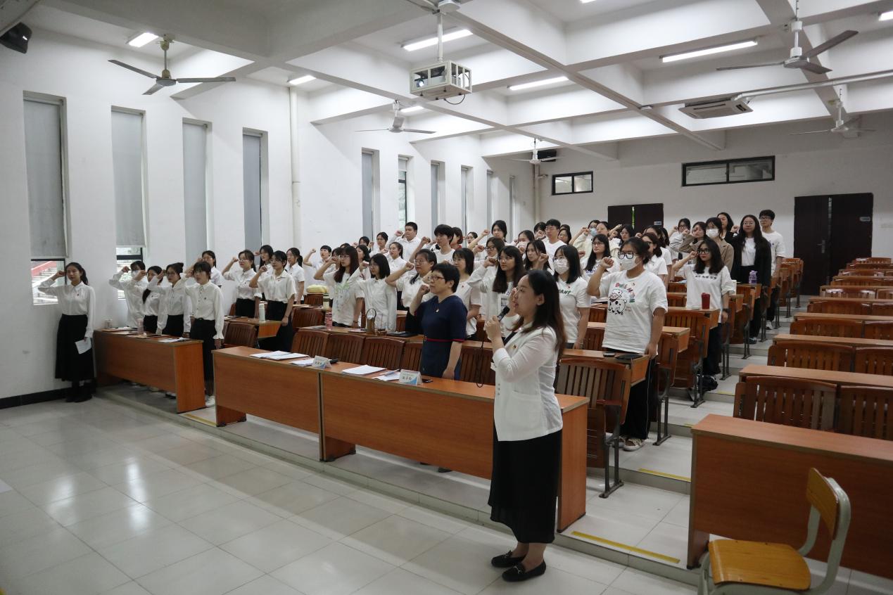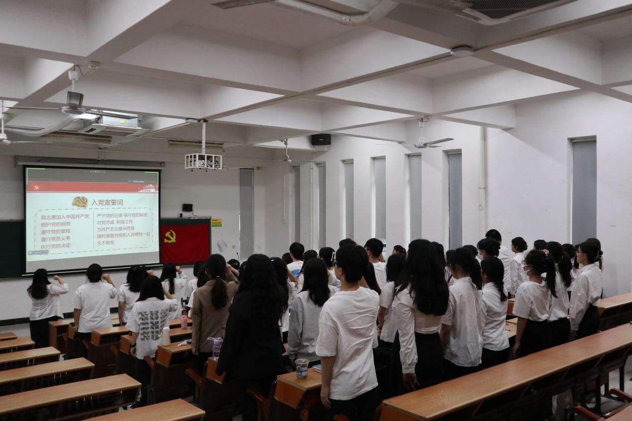 随后,在支部书记王铭扬同志带领下面对党旗进行入党宣誓。在总结发言中,王铭扬同志强调,预备党员也要以正式党员的标准严格要求自己,在思想上、行动中以优秀的党员为榜样,积极融入到学校和支部建设中,努力成长为堪当民族复兴重任的时代新人。
